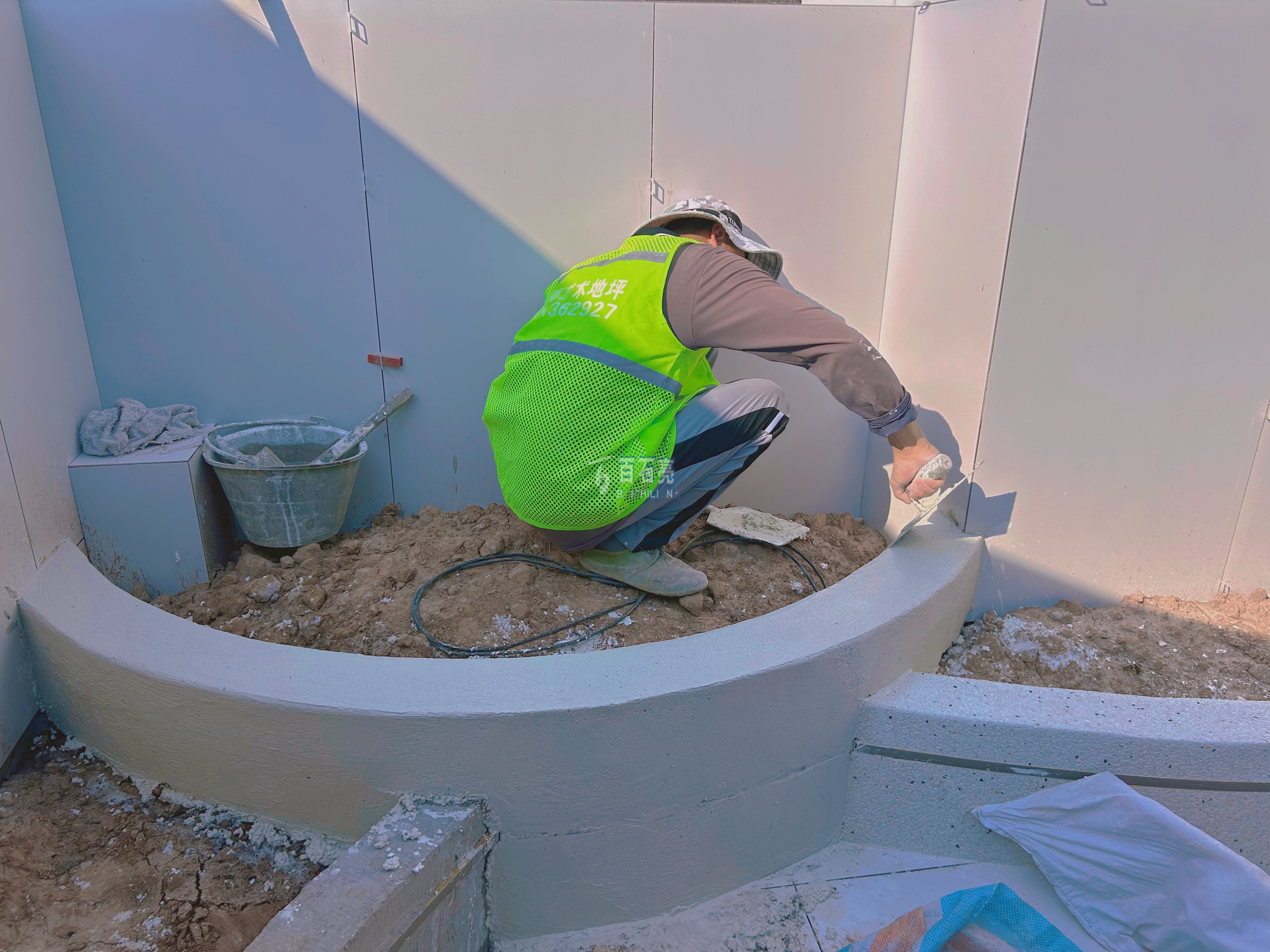 - 渝北壹江郡花園水磨石 這是一款由白色水泥加白色骨料 均勻混合而成的水磨石 用在花園地面 光滑又平整 清新自然 攤鋪 將混合均勻的水磨石材料攤鋪在地面上厚度1.5-2公分。 使用靠尺...