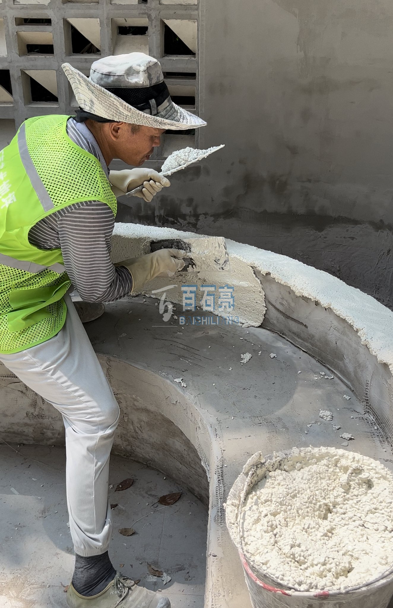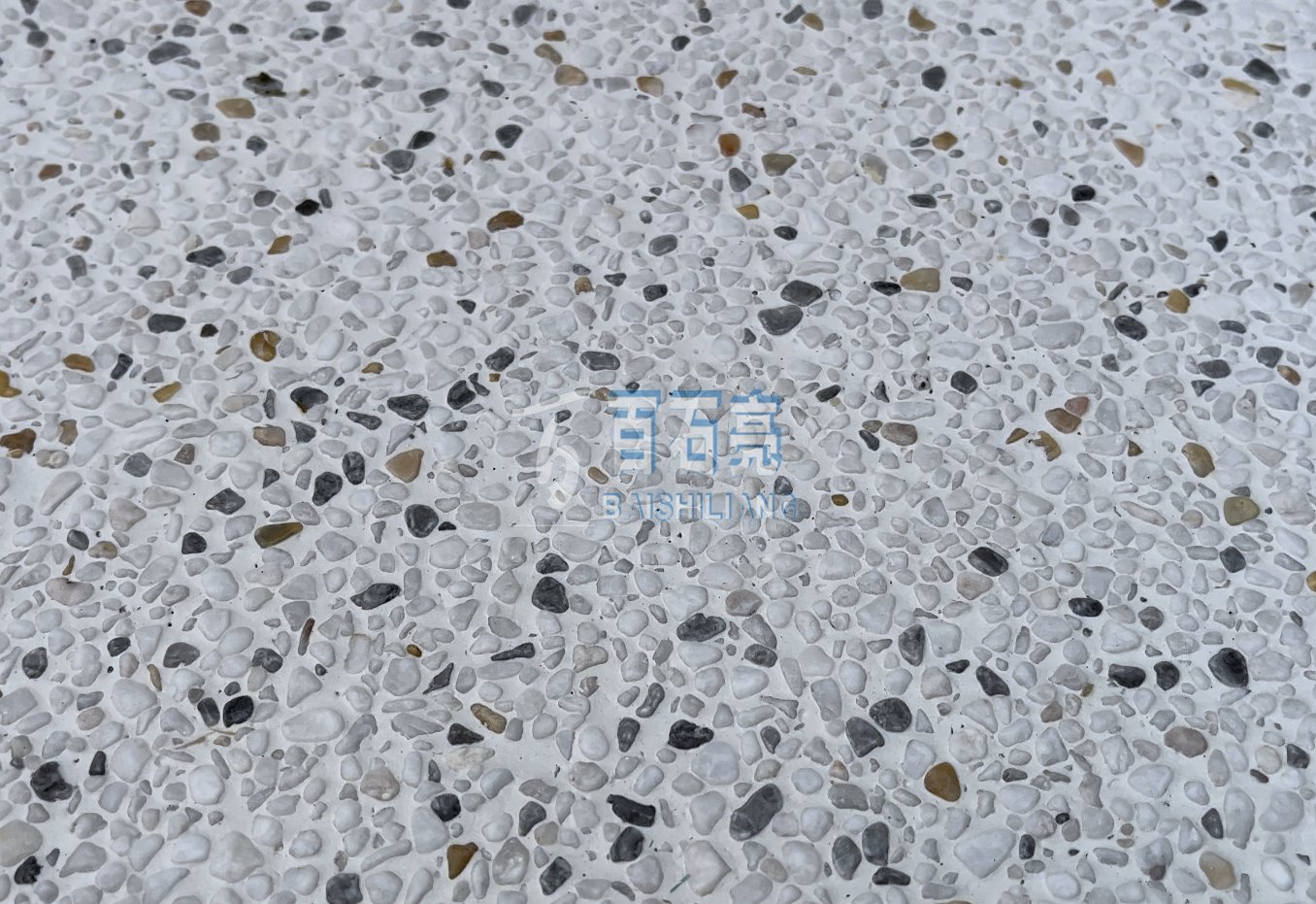 - 渝北壹江郡花園水磨石 這是一款由白色水泥加白色骨料 均勻混合而成的水磨石 用在花園地面 光滑又平整 清新自然 攤鋪 將混合均勻的水磨石材料攤鋪在地面上厚度1.5-2公分。 使用靠尺...
