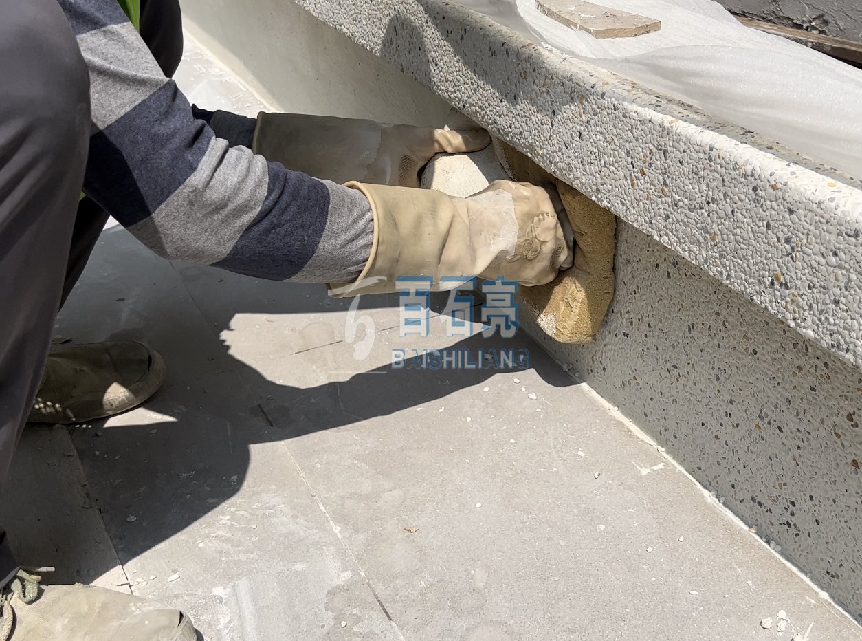 最后,就用柔軟的海綿將水洗石表面的水泥漿清洗掉。整個(gè)過程我介紹得比較簡(jiǎn)潔,但是真正在工地上的施工流程還有很多重要的工序。