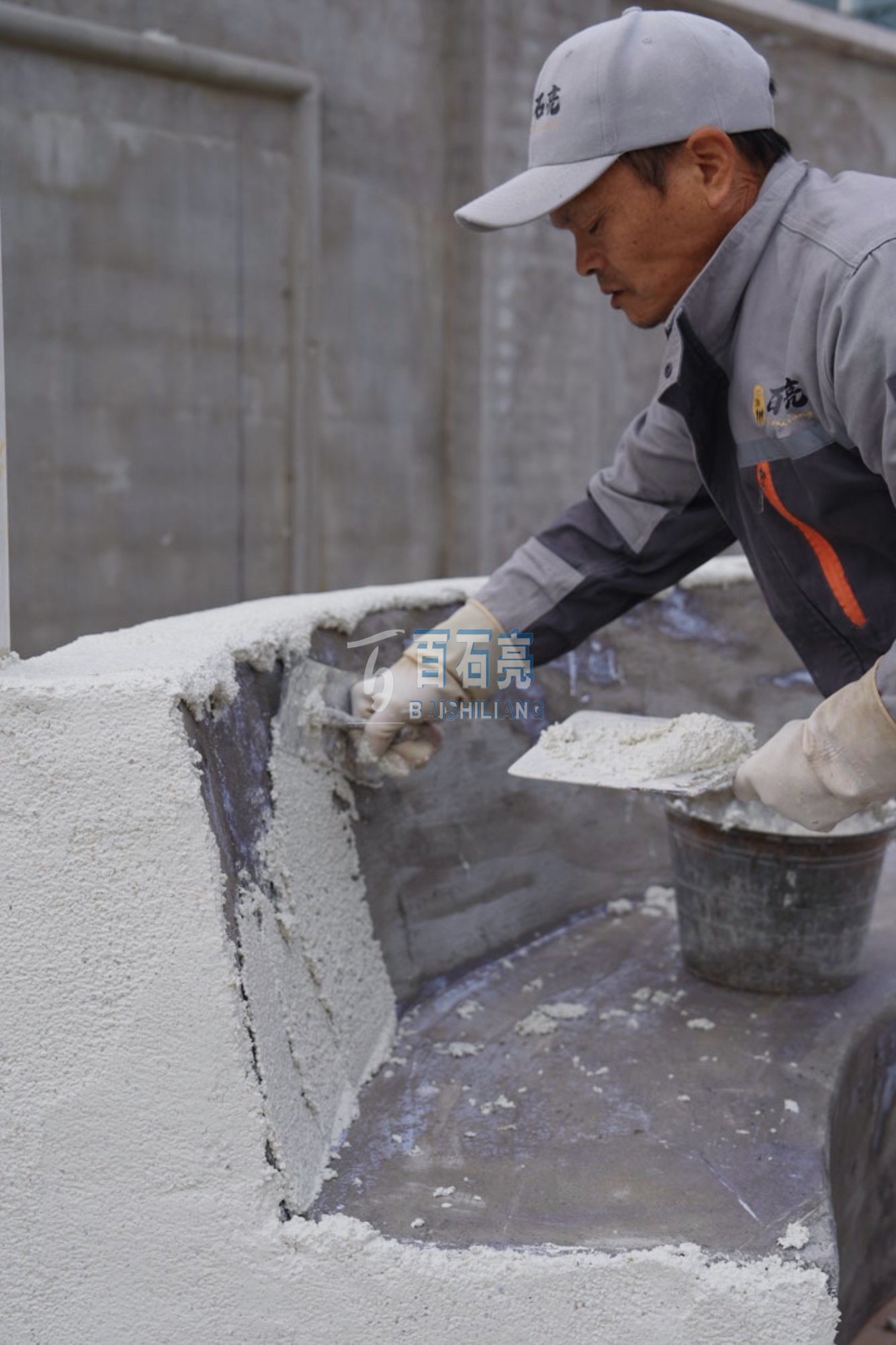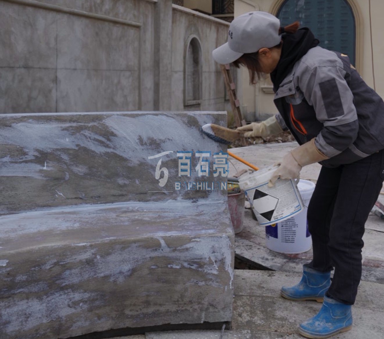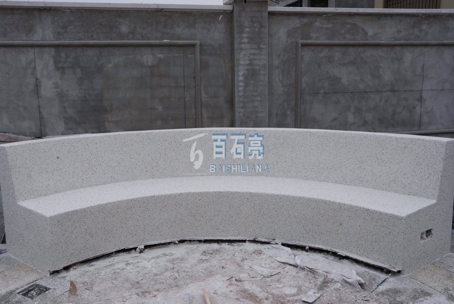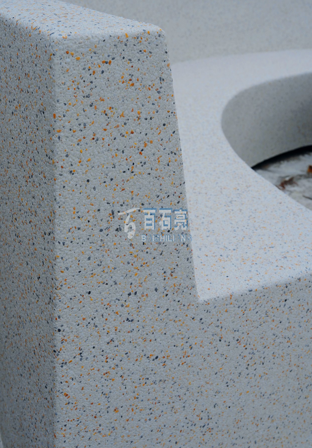 今天為大家分享的是一款弧形水洗石坐凳。這款弧形水洗石坐凳是客戶特別喜歡的設(shè)計風(fēng)格。先用混泥土澆筑成型,然后在表面涂上粘接劑,這樣才能讓水洗石更好的鋪貼在坐凳上,不會掉落。