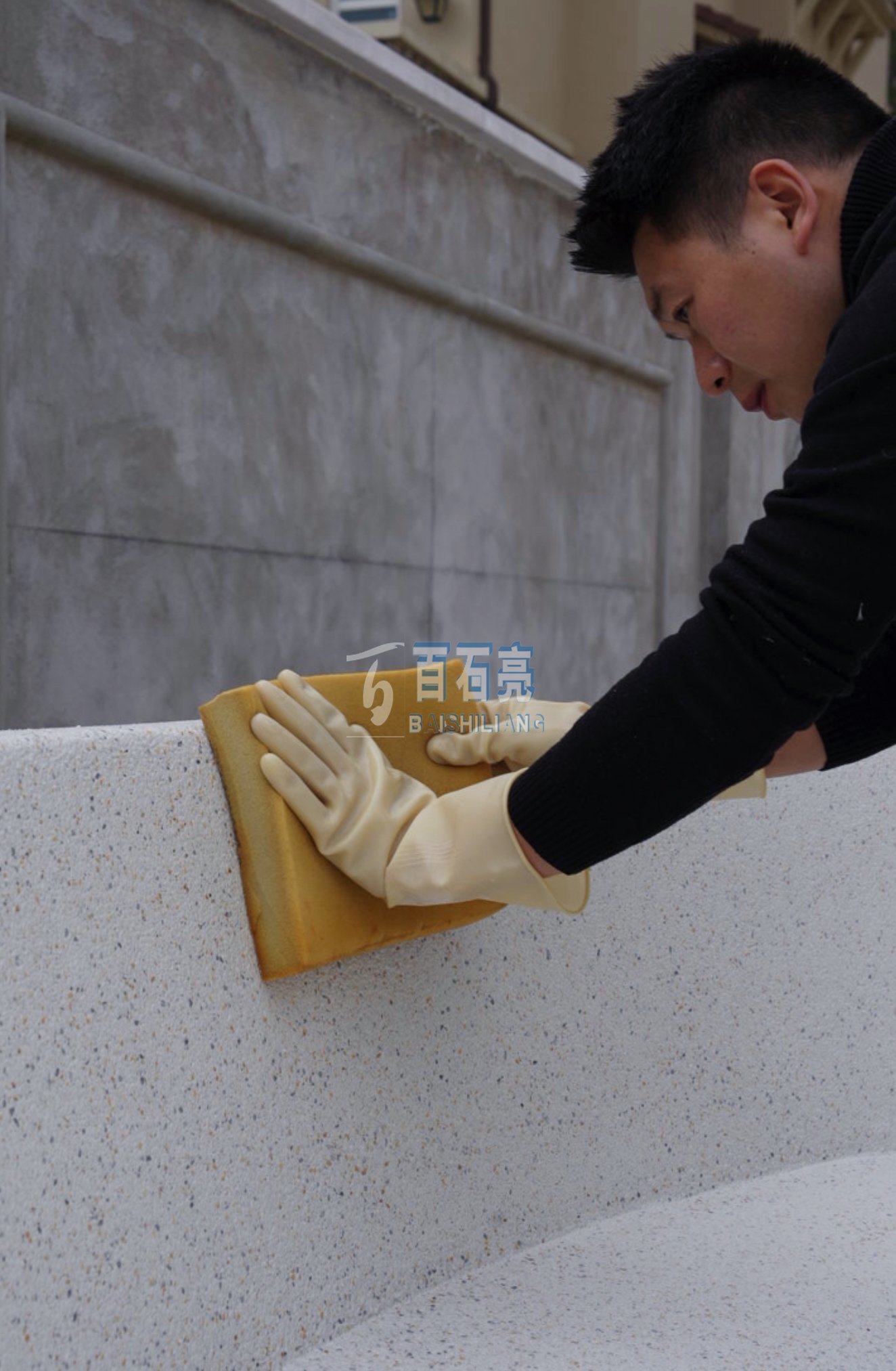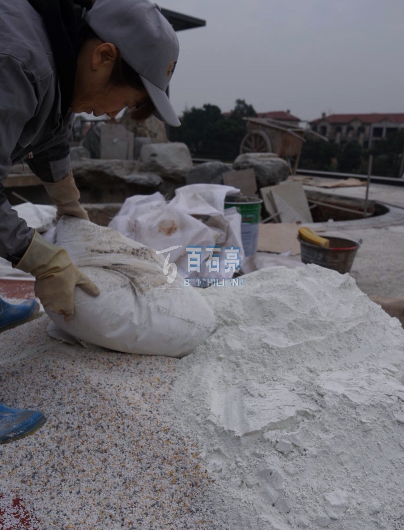 水洗石的款式多樣化,可以根據(jù)大家喜歡的顏色來進行選擇配比,根據(jù)喜好,隨心DIY。客戶選的這款水洗石,是由白色水泥加3—5的白色、黃色與少量灰色骨料均勻配比而成的,這款水洗石非常的清新、自然,但是淺色系的防污性不太強,所以要想做好之后,防水耐臟,就可以在表面做一層防滲透處理。