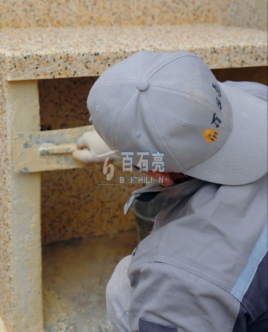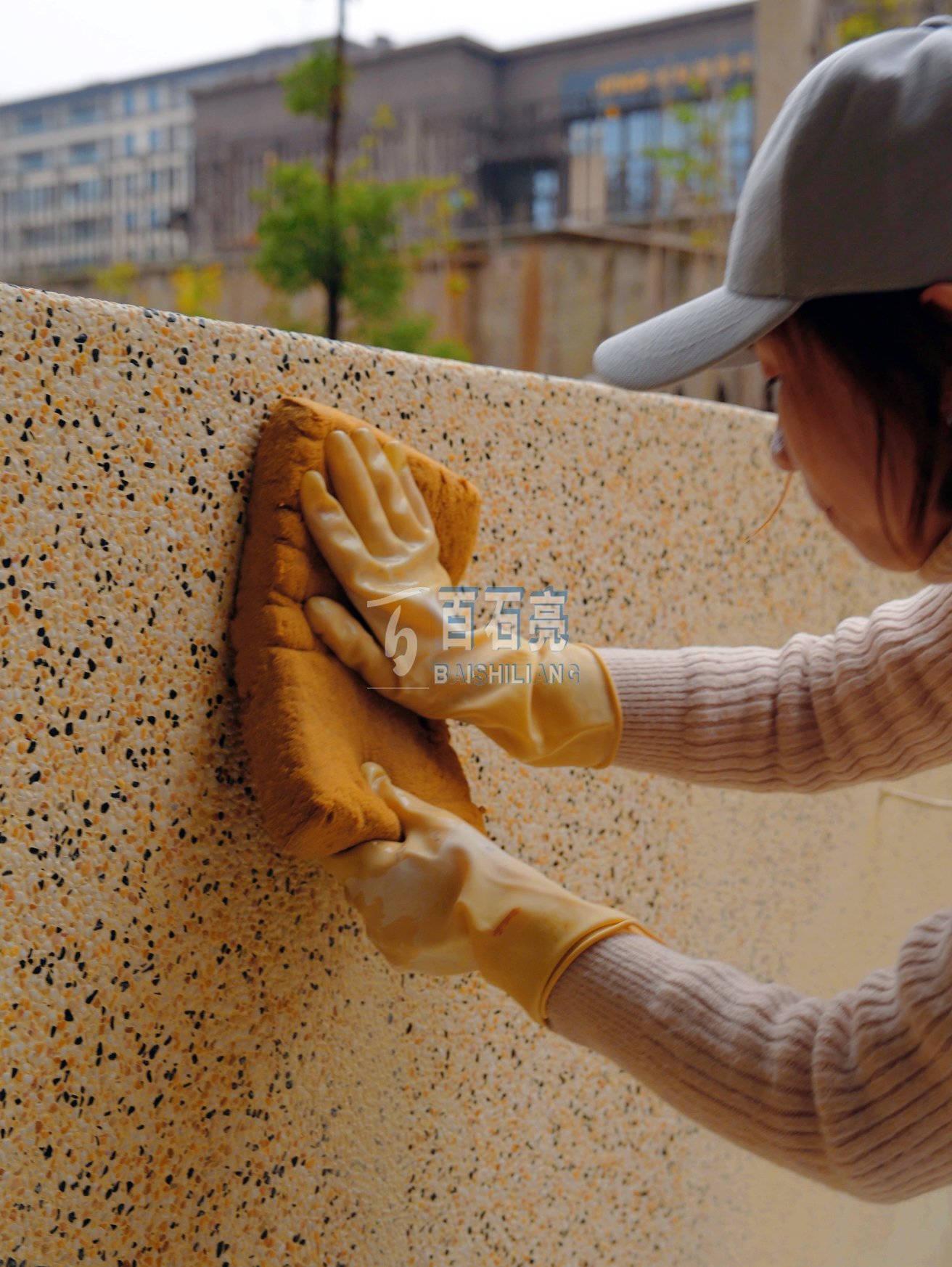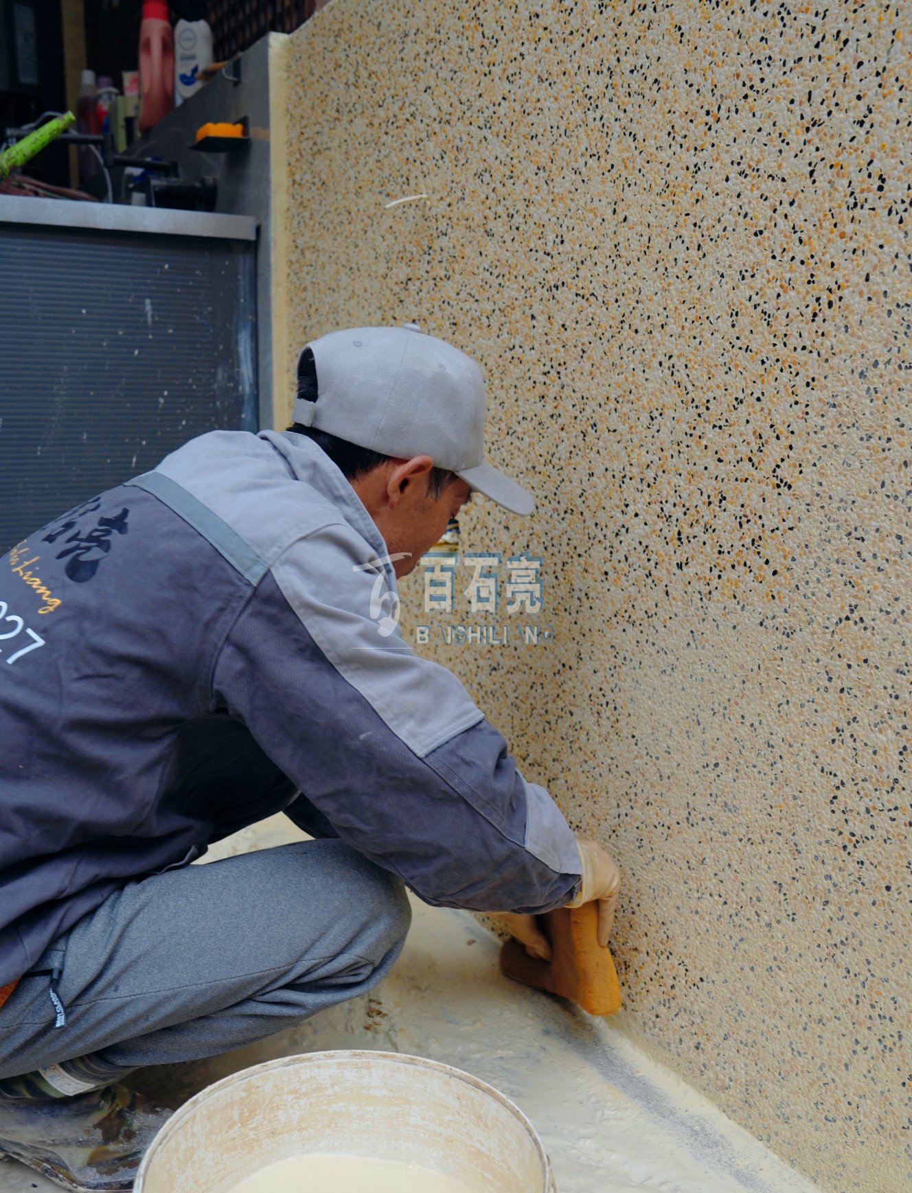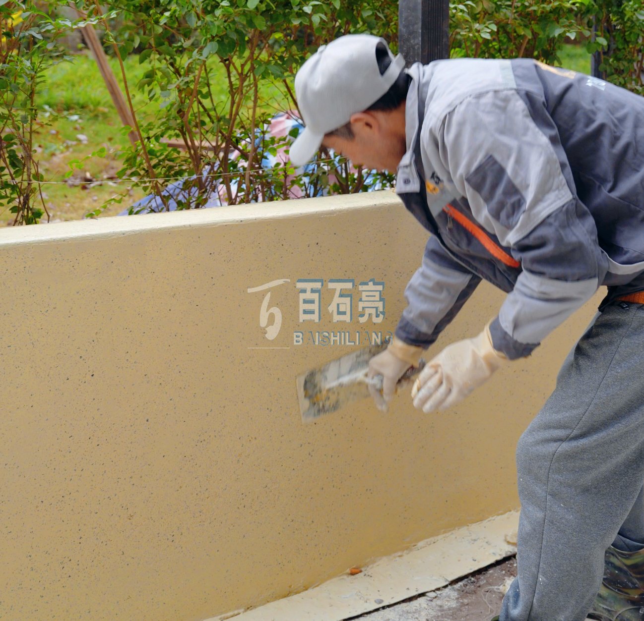墻面的攤鋪工作相對較難一些,所以十分考驗師傅的技術(shù),為此,墻面的水洗石與地面上做的水洗石,他們的配比也是有很大區(qū)別的!