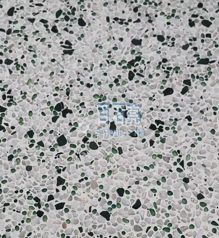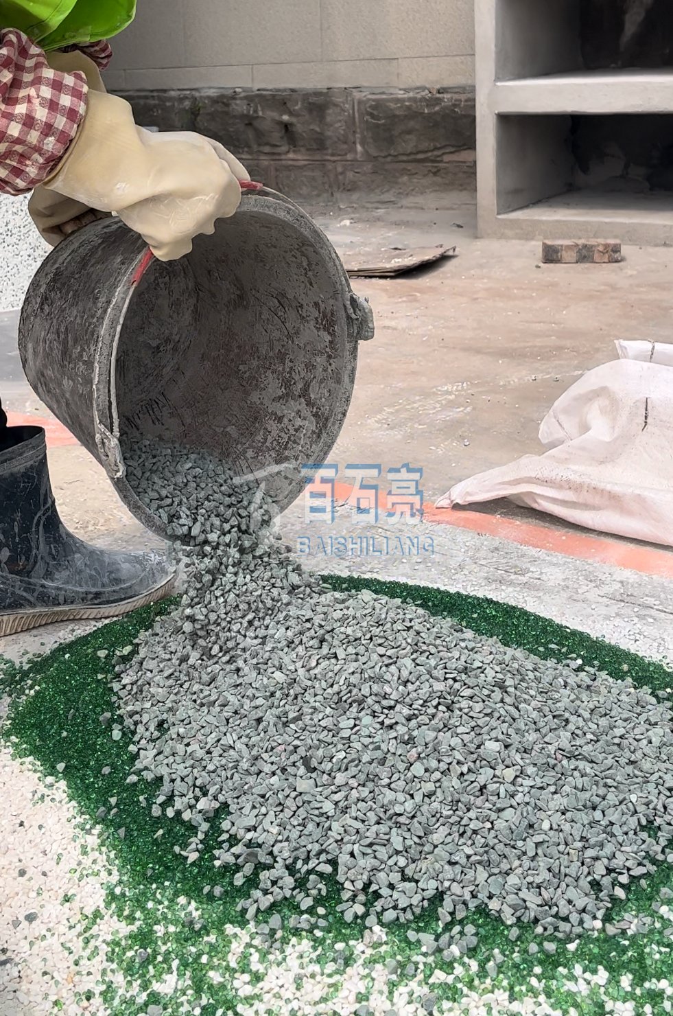 客戶選用的這一款水洗石是由白色的水泥加3到5的綠色、白色骨料均勻混合而成的,十分的獨特 有設(shè)計感。將骨料與水泥攪拌均勻,再加入適量的水?dāng)嚢琛?/span>