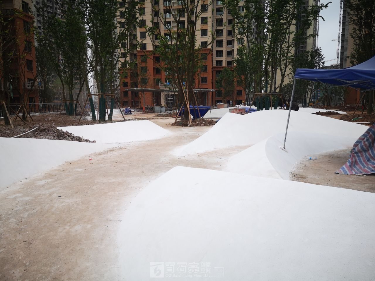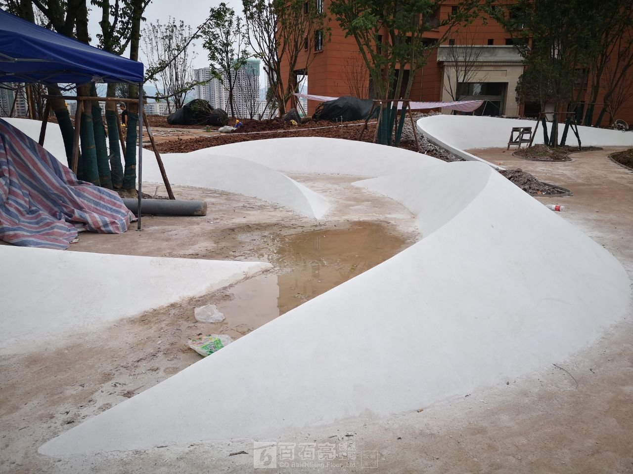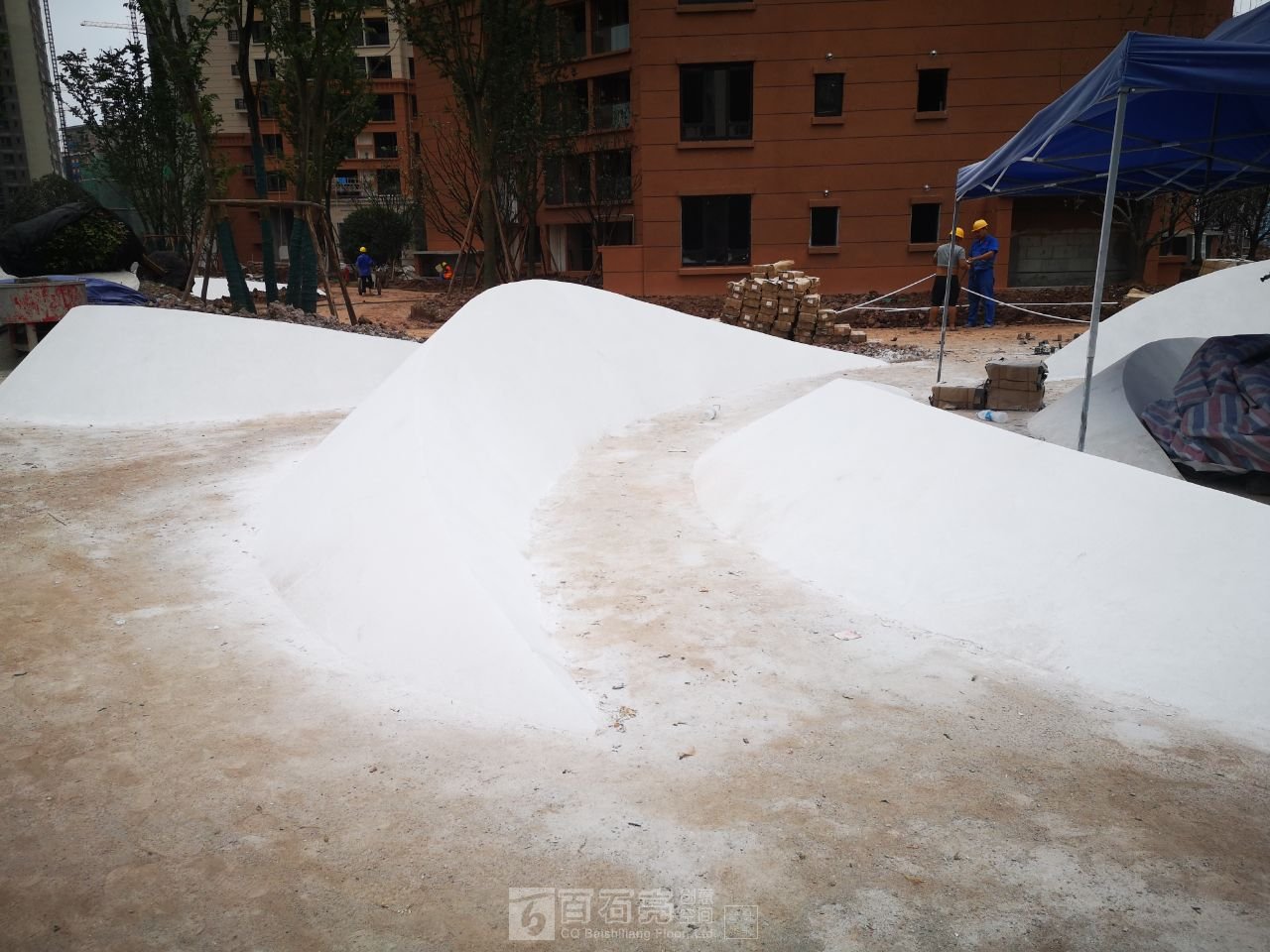 花池水磨石面層養(yǎng)護(hù)中…………