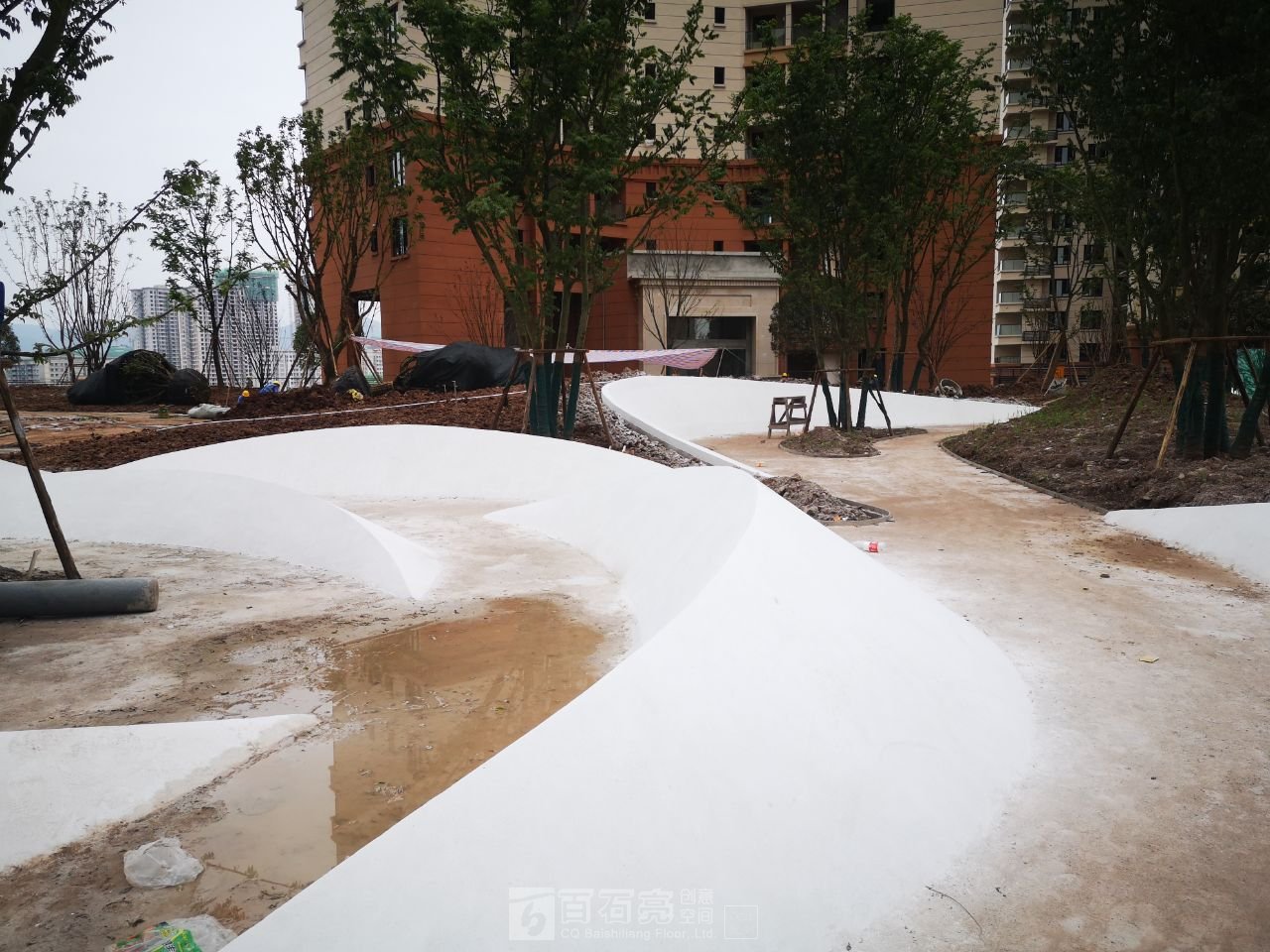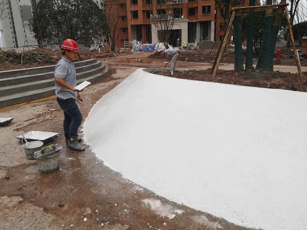 園林景觀水磨石現(xiàn)場施工圖片-融創(chuàng)文旅城A03